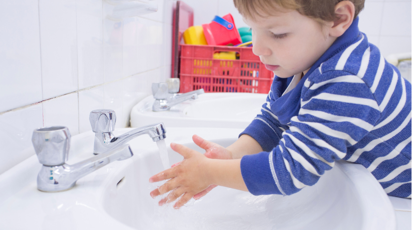 Se laver les mains avec un peu de supervision.